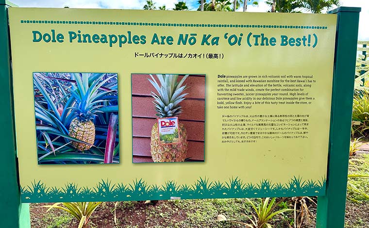 また、園内にはパイナップルの成長過程、ドールの拠点であるワヒアワについて解説付きの看板があります。日本語訳でも書いてあるため、ドールの歴史について学ぶことができます。
