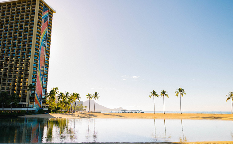 オアフ島にあるカリアスイーツ・ヒルトングランドバケーションズクラブは、ヒルトン・ハワイアン・ビレッジ・ワイキキ・ビーチ・リゾート内に位置する、トロピカルな雰囲気あふれるリゾートです。世界的に有名なワイキキビーチが目の前に広がり、12階から18階に位置する客室からは、オーシャンビューまたはマウンテンビューの美しい景色をお楽しみいただけます。スタジオタイプからフルキッチン付きの1ベッドルーム・スイートまで多彩な客室タイプを備え、ハワイで“暮らすように滞在する”心地よさを体感できるリゾートです。
