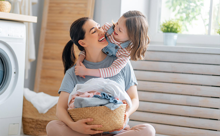 コンドミニアムスタイルのお部屋のランドリーで活躍するハンガー&ランドリーネット