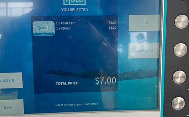 乗車料金は1回3ドルです。カード残高は3ドル以上から選べます。