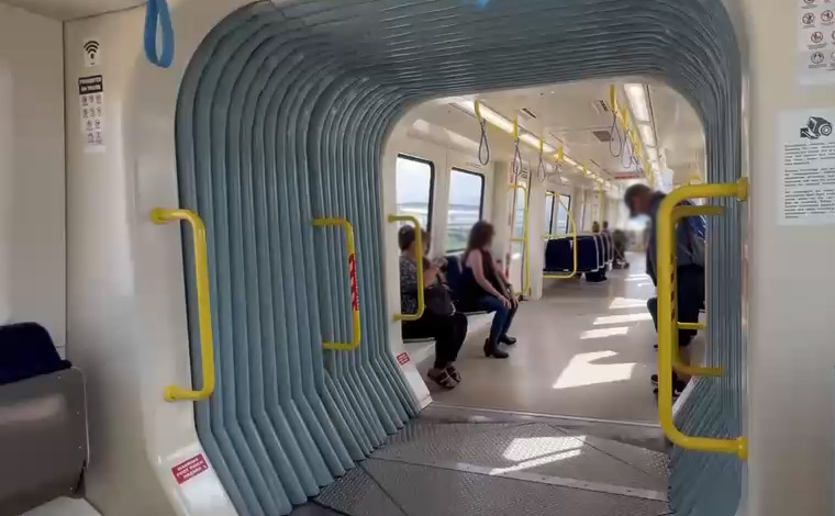 電車が到着したら乗車しましょう。モノレールや沖縄ゆいレールに似ています。