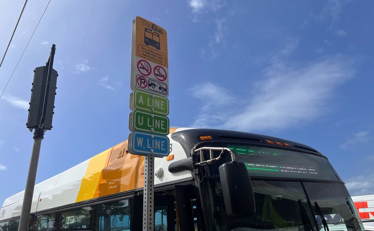 「W LINE WAIKIKI」のバスに乗り換えましょう。渋滞でなければ、ワイキキまで30分ほどで到着できます。