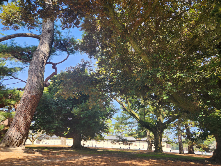 注意点は、苑内がかなりの広さであることに加え、建礼門前の大通りは砂利道であること。履きなれた歩きやすい靴のほうが疲れなくて良いでしょう。
